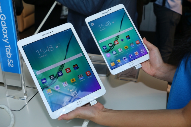 今代Tab S2分別有8吋及9.7吋兩款型號,重量輕至265及389g,驚人厚度僅5.6mm,選用金屬邊框設計,造工精緻,手感一流。硬件方面,Tab S2採用QXGA Super AMOLED 2K螢幕,解像度為2048x1536,與上代的色彩還原率及對比度一樣,依舊逼真細緻;搭載Note 4的Exynos 5433八核心處理器、3GB Ram及3GB Rom,運行Android 5.0.2 OS,8吋提供4,000mAh,9.7吋則5,870mAh。其強效功能還包括經過強化的指紋解鎖、SideSync 3.0及LTE CAT 4下載速度更高達150Mbps,亦支援中國4G網絡制式TD-LTE。
